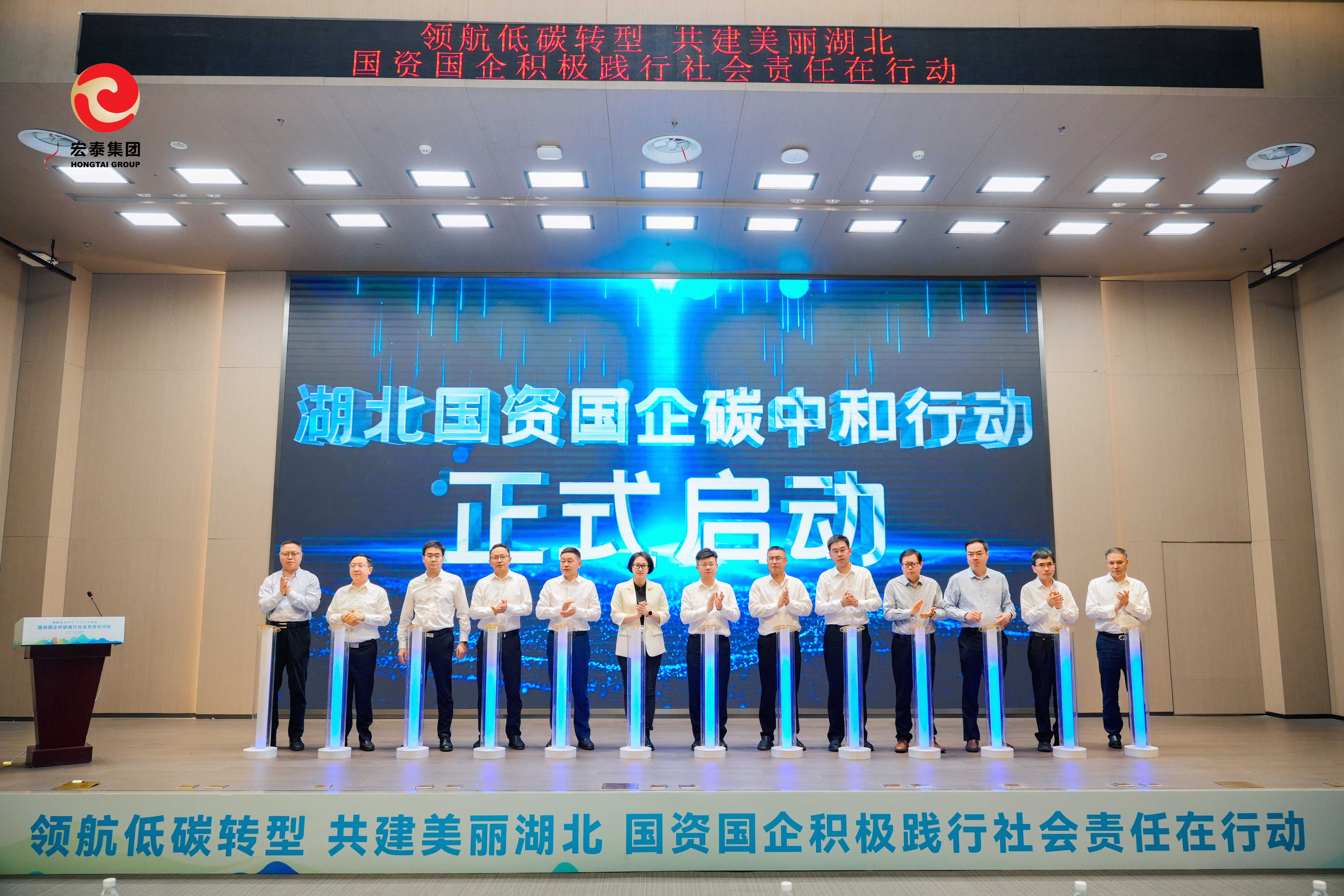 活动由省政府国资委主办、湖北宏泰集团承办,旨在发动国资国企引领践行ESG理念,优化产业形态布局、转变经营管理理念,为湖北建成支点提供强劲绿色动力。省政府国资委、14家省属国有企业及金融机构共同点亮象征绿色未来的启航之光,宣告碳中和行动正式开启。