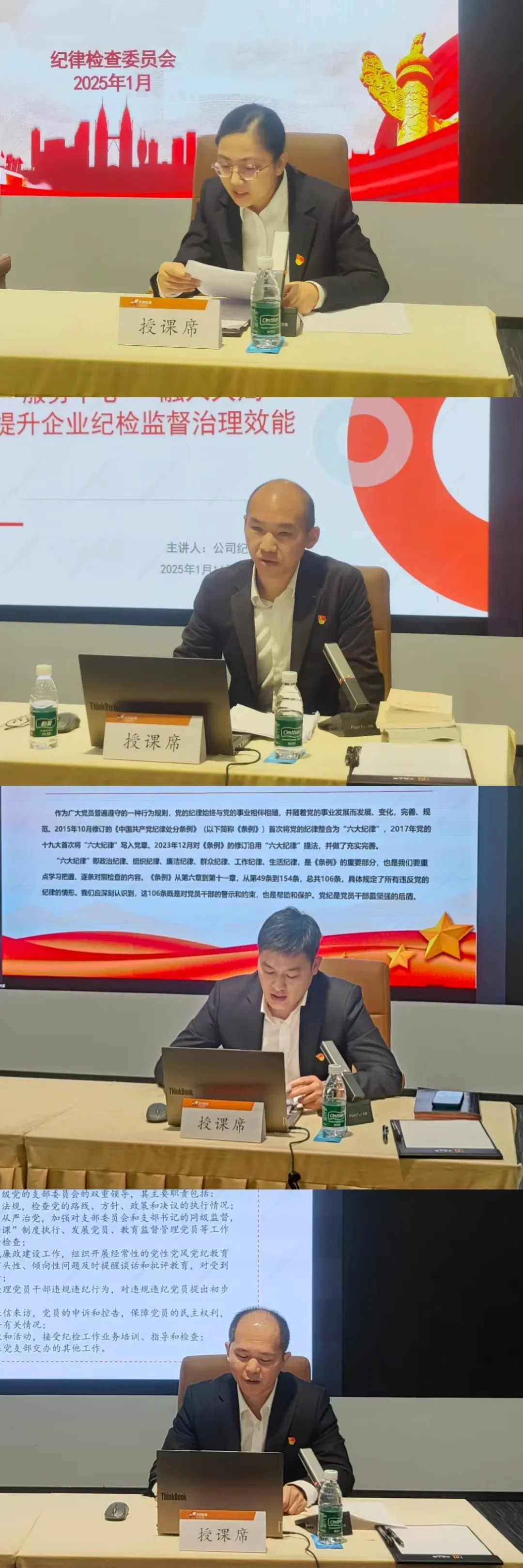 1月16日,由公司纪委各室组负责人,结合各室组业务特点,围绕纪检工作进行交流分享,采取专题授课、观看廉政教育片等方式进行,内容紧扣政治建设、能力建设、廉洁建设三个方面,具有较强的针对性、实效性和操作性。
