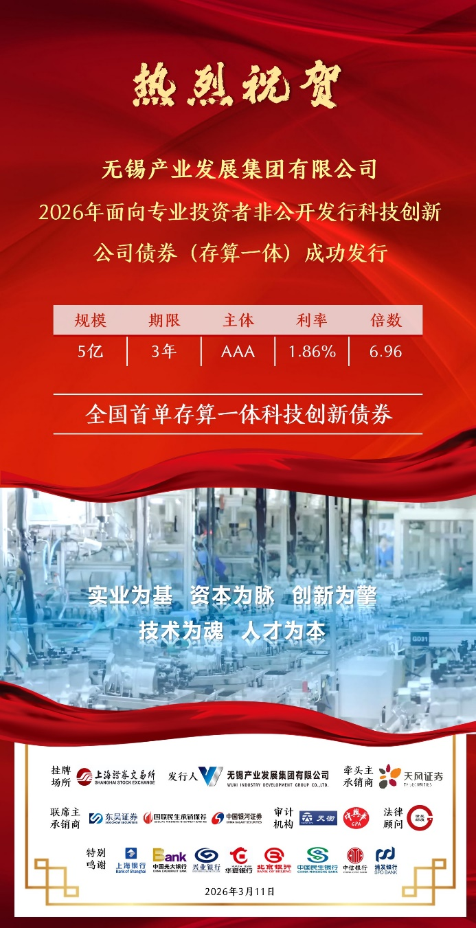 3月11日,中国·yL23411永利(集团有限公司)-官方助力无锡产业发展集团有限公司(以下简称“无锡产业集团”)在上海证券交易所成功发行全国首单存算一体科技创新债券“26锡产K1”,票面利率仅1.86%,认购倍数达6.96倍,是中国·yL23411永利(集团有限公司)-官方以金融赋能硬科技创新发展的重要实践,充分彰显了公司在助力“科技-产业-金融”深度融合,服务高水平科技自立自强与新质生产力培育的责任与担当。
