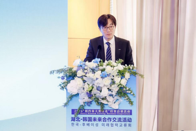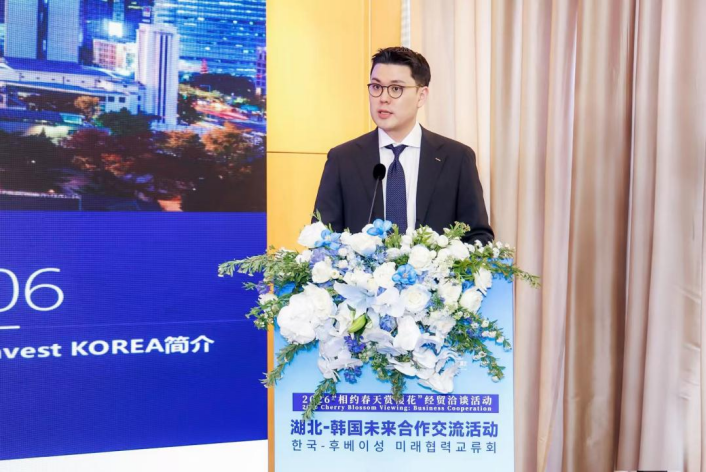活动设专题推介环节并邀请KOTRA香港贸易馆次长金荣奭围绕投资环境与产业优势展开深入分享。金荣奭就韩国投资环境、重点产业政策及对华合作机遇作详细介绍。现场,来自湖北、韩国有关机构负责人亦通过回顾近年来湖北与韩国在重点产业领域的合作成果,为双方企业提供了可借鉴的合作经验,进一步坚定了深化合作的信心。